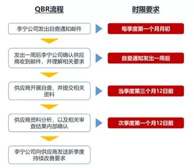 除此以外,對(duì)于現(xiàn)已經(jīng)開(kāi)展合作關(guān)系的供應(yīng)商,李寧公司會(huì)以季度和年度的頻率持續(xù)評(píng)估其社會(huì)責(zé)任表現(xiàn)與風(fēng)險(xiǎn),以保障供應(yīng)商日常合規(guī)管理和持續(xù)改善。以季度評(píng)估(Quarterly Business Review)為例,李寧公司會(huì)要求供應(yīng)商通過(guò)提供相關(guān)文件,并開(kāi)展自查活動(dòng),發(fā)現(xiàn)日常工作和管理中存在的風(fēng)險(xiǎn),并采取相應(yīng)措施有效應(yīng)對(duì)。