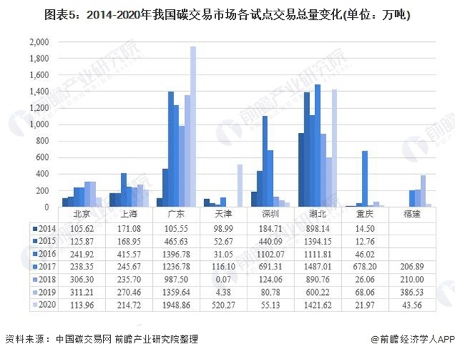 碳排放權(quán)交易市場(chǎng)是指以溫室氣體排放配額或溫室氣體減排信用為標(biāo)的物所進(jìn)行的交易的市場(chǎng)。我國(guó)碳交易市場(chǎng)金額自建立起呈現(xiàn)增長(zhǎng)態(tài)勢(shì),并且各個(gè)試點(diǎn)呈現(xiàn)了不同的市場(chǎng)樣貌,未來(lái)在十四五期間,市場(chǎng)將會(huì)繼續(xù)壯大和完善,為實(shí)現(xiàn)碳中和等的減排目標(biāo)助力。