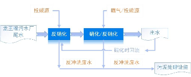 中國市政工程中南設(shè)計(jì)研究總院有限公司根據(jù)自身雄厚的技術(shù)實(shí)力,提出采用硝化+深度反硝化脫氮主體工藝處理南湖本體湖水和采用前置反硝化+硝化脫氮主體工藝處理龍王嘴污水處理廠尾水,為南湖補(bǔ)水及增強(qiáng)水動(dòng)力循環(huán)的工藝路線。