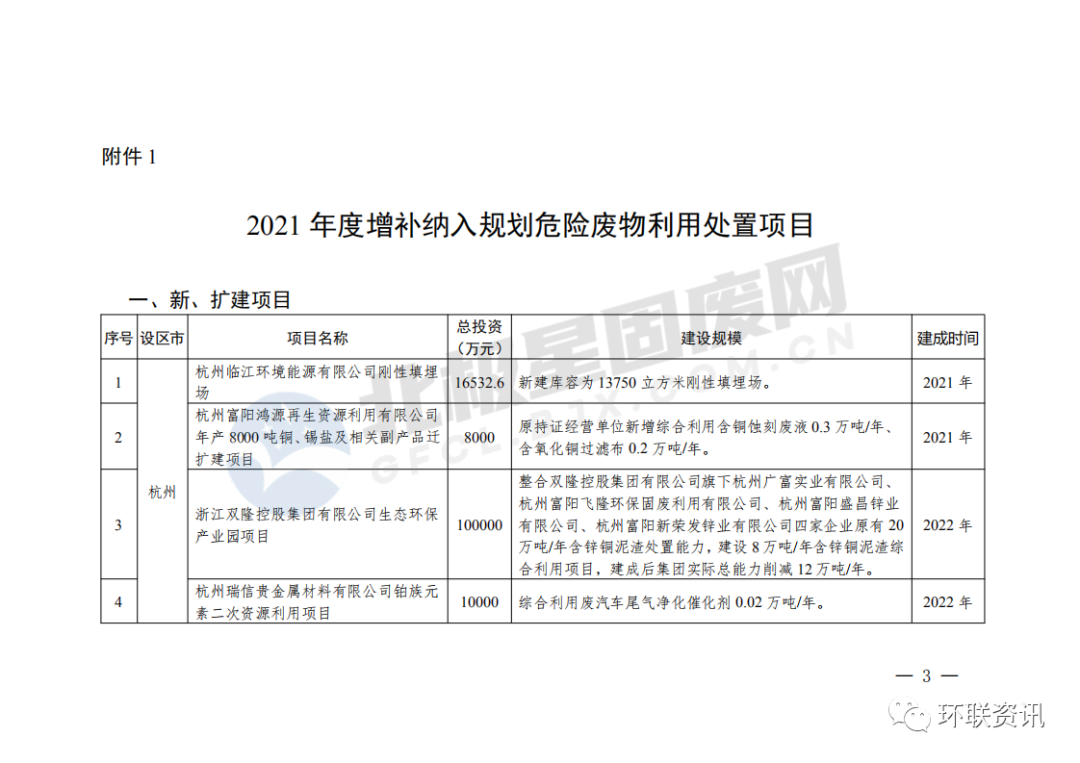 1.2021年度增補(bǔ)納入規(guī)劃危險(xiǎn)廢物利用處置項(xiàng)目