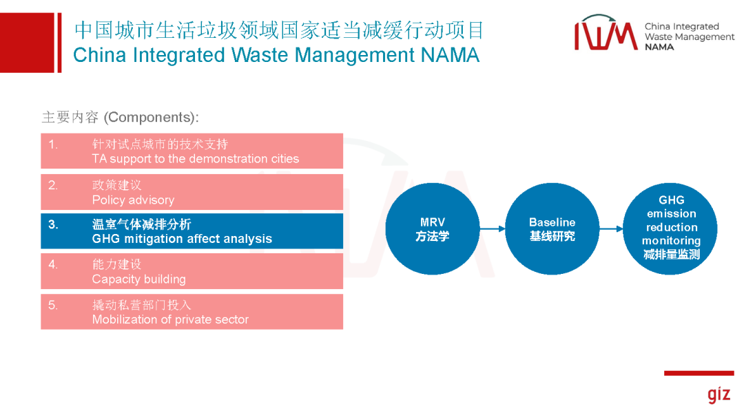另外還有一部分很重要的內(nèi)容,我們會對這五個城市垃圾行業(yè)的溫室氣體排放去進行分析。首先我們建立一個基于城市的方法學,在這個方法學的基礎上,我們會有一個對五個城市的基線研究,最終減排量也是會每年度的去做定期的核算。