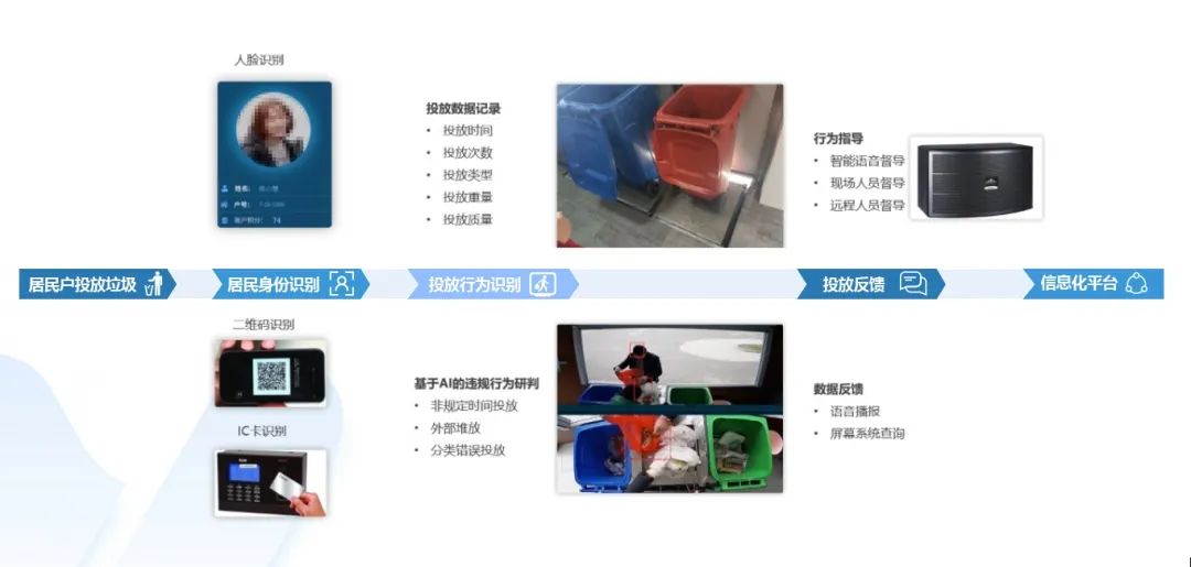 借助智能設備、AI設備、計量稱重設備、質(zhì)量評價設備的綜合應用,可以精準識別居民戶信息、投放垃圾類型、投放垃圾質(zhì)量、袋數(shù)等等,再結合差別化收費,如廚余垃圾不收費、可回收物返還積分,不僅為每個月精確計算每戶居民收費金額提供科學的數(shù)據(jù)支撐,還可以借助信息化平臺實現(xiàn)投放用戶的身份、投放垃圾重量與質(zhì)量的追蹤溯源,為分類成效的掌控與精準宣教的實施提供基礎保證。