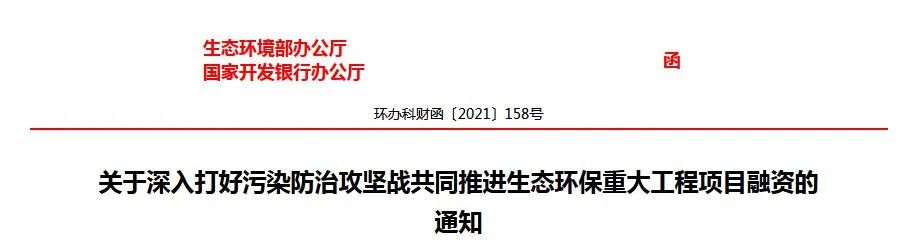 為深入貫徹落實(shí)黨中央、國務(wù)院關(guān)于推進(jìn)生態(tài)文明建設(shè)、全面加強(qiáng)生態(tài)環(huán)境保護(hù)、深入打好污染防治攻堅(jiān)戰(zhàn)的決策部署,推進(jìn)生態(tài)環(huán)境治理體系和治理能力現(xiàn)代化,生態(tài)環(huán)境部、國家開發(fā)銀行簽署《關(guān)于深入打好污染防治攻堅(jiān)戰(zhàn) 共同推進(jìn)生態(tài)環(huán)保重大工程項(xiàng)目融資合作備忘錄》,發(fā)揮部行合作優(yōu)勢,共同加大生態(tài)環(huán)保重大工程項(xiàng)目融資,培育環(huán)保產(chǎn)業(yè)新增長點(diǎn)?,F(xiàn)將有關(guān)事項(xiàng)通知如下: