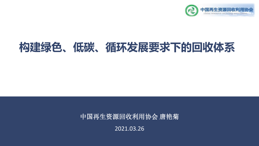 之前看到主題是碳達(dá)峰、碳中和,我今天是來學(xué)習(xí)的,因?yàn)槲覀冞@個(gè)行業(yè)怎么樣去參與,怎么貢獻(xiàn)行業(yè)的力量,一直沒有頭緒,也沒有深入的去研究過。今天先跟大家說一下整個(gè)我們再生資源體系是什么樣的,后面也是提了幾個(gè)問題,想跟大家去請教一下。