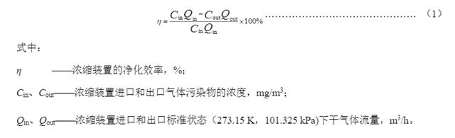 5.2.1正常工況下,進氣揮發(fā)性有機物濃度≥100mg/m3時,濃縮裝置凈化效率應≥90%。