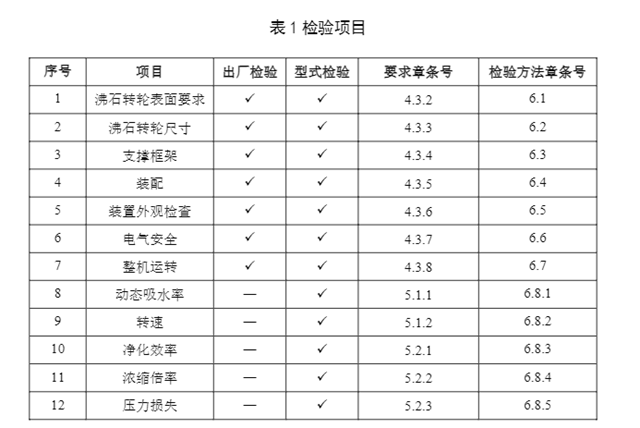 5.1.1濃縮裝置的沸石動態(tài)吸水率應小于10%。