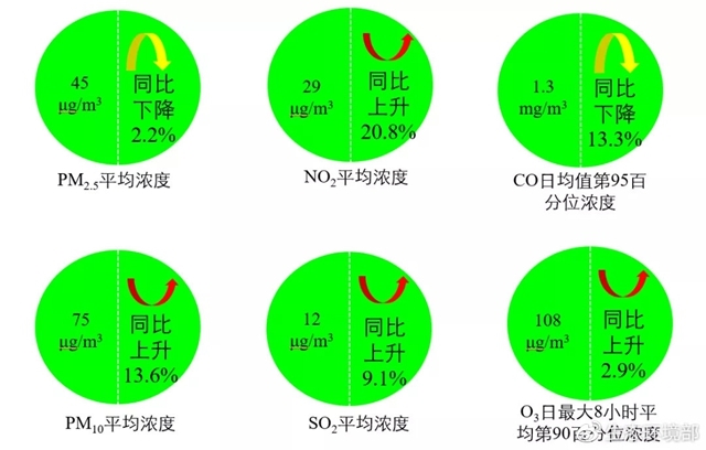 1-3月,全國339個地級及以上城市平均優(yōu)良天數(shù)比例為80.9%,同比下降2.5個百分點;PM2.5平均濃度為45微克/立方米,同比下降2.2%;PM10平均濃度為75微克/立方米,同比上升13.6%;O3平均濃度為108微克/立方米,同比上升2.9%;SO2平均濃度為12微克/立方米,同比上升9.1%;NO2平均濃度為29 微克/立方米,同比上升20.8%;CO平均濃度為1.3毫克/立方米,同比下降13.3%。