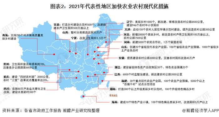 為促進(jìn)鄉(xiāng)村振興發(fā)展,各省市紛紛采取行動加快農(nóng)業(yè)農(nóng)村現(xiàn)代化改造。具體看,主要關(guān)注農(nóng)村公路新建及改造項目,美麗鄉(xiāng)村建設(shè)、農(nóng)村戶用廁所改造及現(xiàn)代農(nóng)業(yè)示范園區(qū)等建設(shè)項目。
