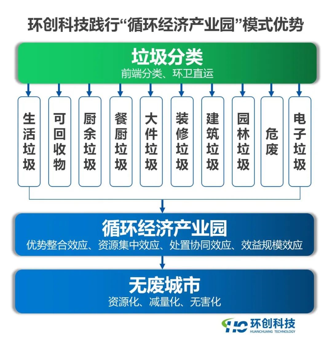 該城市固廢整體解決方案不僅能夠使垃圾分類后的各類垃圾得到資源化處置,提高資源轉(zhuǎn)化效率;還充分發(fā)揮集中協(xié)同處置的規(guī)模化優(yōu)勢,避免重復(fù)建設(shè),大幅度降低投資建設(shè)和運(yùn)營成本。在垃圾分類不斷深化的當(dāng)下,還需避免分類轉(zhuǎn)運(yùn)及處置的“分而散,散而小”的重復(fù)建設(shè),因而各地對(duì)集約化的綜合協(xié)同處置和從分類到轉(zhuǎn)運(yùn)及處置的全鏈條一攬子解決方案的需求呼之欲出。鄭州市高新區(qū)生活垃圾分揀中心即為該模式的典型代表和成功案例。該項(xiàng)目由環(huán)創(chuàng)科技設(shè)計(jì)承建及運(yùn)營,以區(qū)級(jí)分揀中心協(xié)同處置這一新模式,引領(lǐng)了生活垃圾分類末端集中協(xié)同處置的新工藝、新模式和新方向,被相關(guān)行業(yè)專家高度評(píng)價(jià)為行業(yè)標(biāo)桿工程。