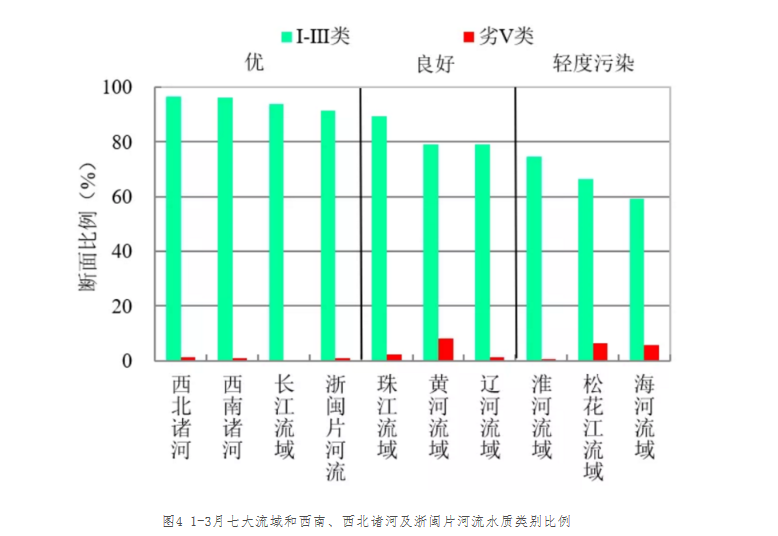 近日,國(guó)家生態(tài)環(huán)境部通報(bào)了2021年第一季度全國(guó)地表水質(zhì)量情況。報(bào)告顯示,今年1-3月,長(zhǎng)江、黃河、珠江等七大流域及西北諸河、西南諸河和浙閩片河流水質(zhì)優(yōu)良(Ⅰ~Ⅲ類)斷面比例為84.7%,同比上升3.1個(gè)百分點(diǎn);劣Ⅴ類斷面比例為2.2%,同比下降1.5個(gè)百分點(diǎn)。主要污染指標(biāo)為化學(xué)需氧量、氨氮和高錳酸鹽指數(shù)。其中,西北諸河、西南諸河、長(zhǎng)江流域和浙閩片河流水質(zhì)為優(yōu);珠江、黃河和遼河流域水質(zhì)良好;淮河、松花江和海河流域?yàn)檩p度污染。