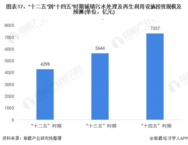 根據(jù)“十三五”規(guī)劃中針對(duì)水環(huán)境治理領(lǐng)域的投資規(guī)模,同時(shí)結(jié)合新時(shí)期的農(nóng)村水環(huán)境治理與幾大流域生態(tài)治理的工程總量與復(fù)雜程度綜合分析,前瞻判斷“十四五”規(guī)劃中針對(duì)水環(huán)境治理的投資規(guī)?;蜻M(jìn)一步升級(jí)加碼至7337億元。中國(guó)污水處理市場(chǎng)仍有較大發(fā)展空間。