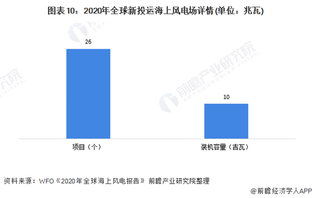 海上風(fēng)電場(chǎng)方面,截至2020年末,全球共有26個(gè)在建海上風(fēng)電場(chǎng),容量接近10吉瓦,其中,有接近44%的在建容量來(lái)自于中國(guó)。