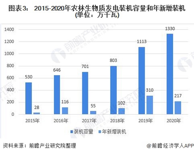 截止2020年底,生物質(zhì)發(fā)電新增裝機(jī)543萬千瓦,累計(jì)裝機(jī)達(dá)到2952萬千瓦,同比增長30.1%。全年生物質(zhì)發(fā)電1326億千瓦時,同比增長19.4%。繼續(xù)保持穩(wěn)步增長勢頭。