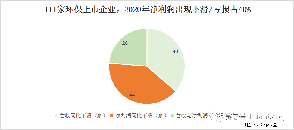 圖一:111家環(huán)保上市企業(yè),2020年凈利潤出現(xiàn)下滑/虧損占40%
