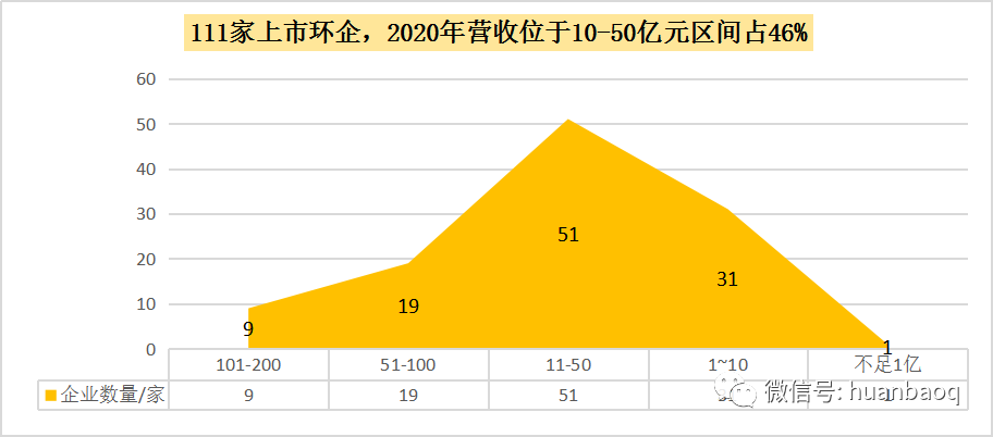 圖三:111家上市環(huán)企,2020年?duì)I收分布區(qū)間圖
