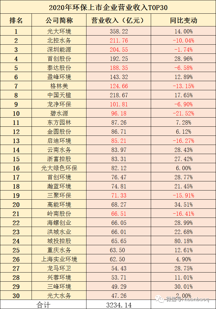 營收榜:光大環(huán)境穩(wěn)居第一,百億企業(yè)3家“掉隊(duì)”