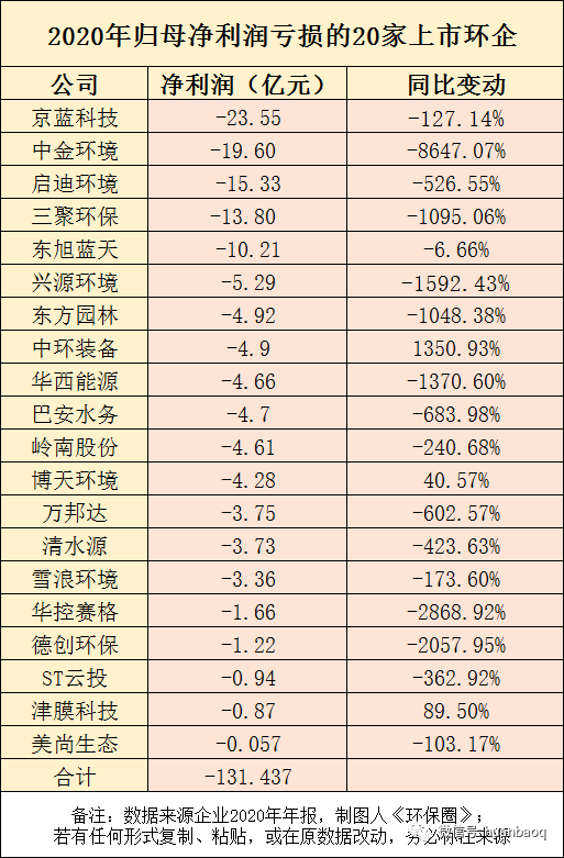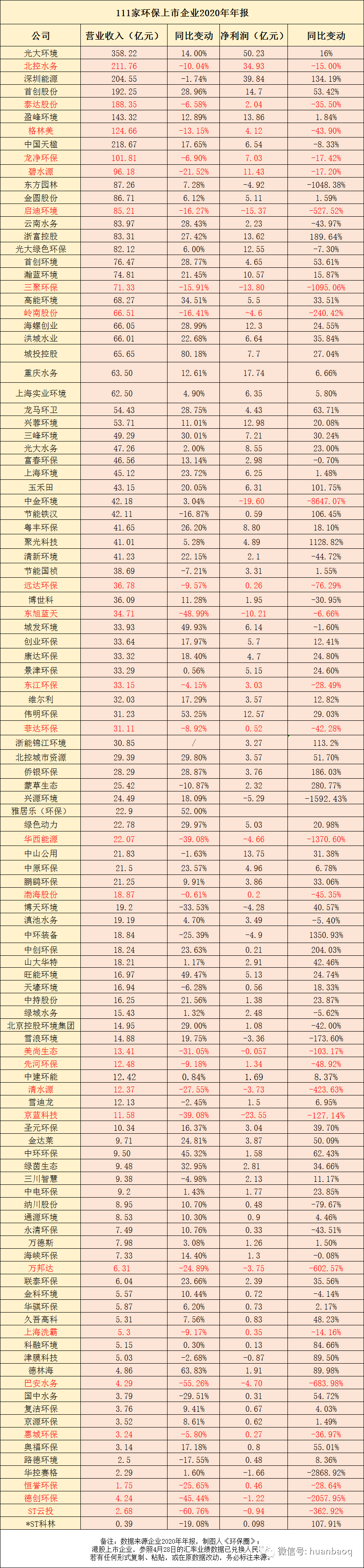 數(shù)據(jù)分析 | 111家上市環(huán)企2020年報(bào)盤點(diǎn):北控啟迪碧水源營收凈利潤“雙降”