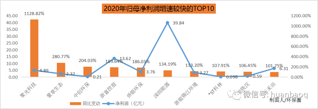 圖八:2020年環(huán)保上市企業(yè)凈利潤增速較快TOP10