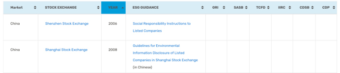 滬深交易所現(xiàn)階段采取可持續(xù)交易所倡議中強(qiáng)調(diào)的可持續(xù)行動(dòng)為結(jié)合我國(guó)資本市場(chǎng)發(fā)展機(jī)制和階段下穩(wěn)步推進(jìn)、逐步完善的過(guò)程中,但不可回避的問(wèn)題是響應(yīng)力度有限。從交易所自身可持續(xù)發(fā)展維度看,上海證券交易所自2018年以來(lái)連續(xù)發(fā)布3年社會(huì)責(zé)任報(bào)告,而深圳證券交易所對(duì)此可持續(xù)行動(dòng)無(wú)相關(guān)回應(yīng)。從交易所推動(dòng)市場(chǎng)可持續(xù)發(fā)展維度看,以ESG信息披露為例,滬深交易所非常前瞻的分別在2006年及2008年推出社會(huì)責(zé)任指引和環(huán)境信息披露指引,后續(xù)則以強(qiáng)化信息披露要求,提升上市公司、投資者可持續(xù)投資意識(shí)為主,對(duì)ESG信息披露標(biāo)準(zhǔn)無(wú)進(jìn)一步要求與完善。