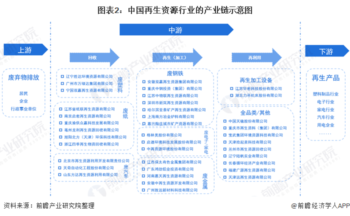 行業(yè)下游主要則是再生產(chǎn)品或資源的消費、應(yīng)用市場,包括塑料制品、電子家電和汽車等行業(yè)。本文將從產(chǎn)業(yè)鏈發(fā)展現(xiàn)狀、競爭格局及發(fā)展趨勢等多角度深入分析我國再生資源產(chǎn)業(yè)。