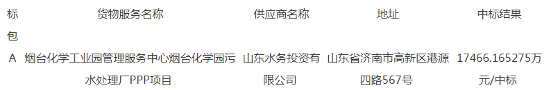 原標(biāo)題:煙臺化學(xué)工業(yè)園管理服務(wù)中心煙臺化學(xué)工業(yè)園污水處理廠PPP項目中標(biāo)公告