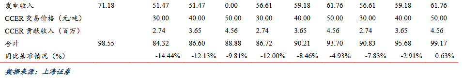 目前全國碳市場交易系統(tǒng)已基本建設完成,相關規(guī)則制度也已完備,此前生態(tài)環(huán)境部表露預計6 月底前將要正式啟動。CCER作為碳交易市場中價格機制的重要環(huán)節(jié),也有望重啟,我們測算CCER對垃圾焚燒發(fā)電的盈利貢獻: