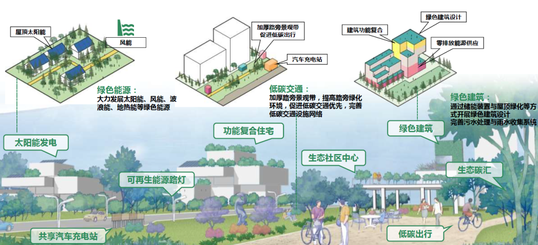 通過(guò)發(fā)展綠色生態(tài)技術(shù),降低社區(qū)碳排放,提高社區(qū)固碳能力,建設(shè)生態(tài)零碳社區(qū)。