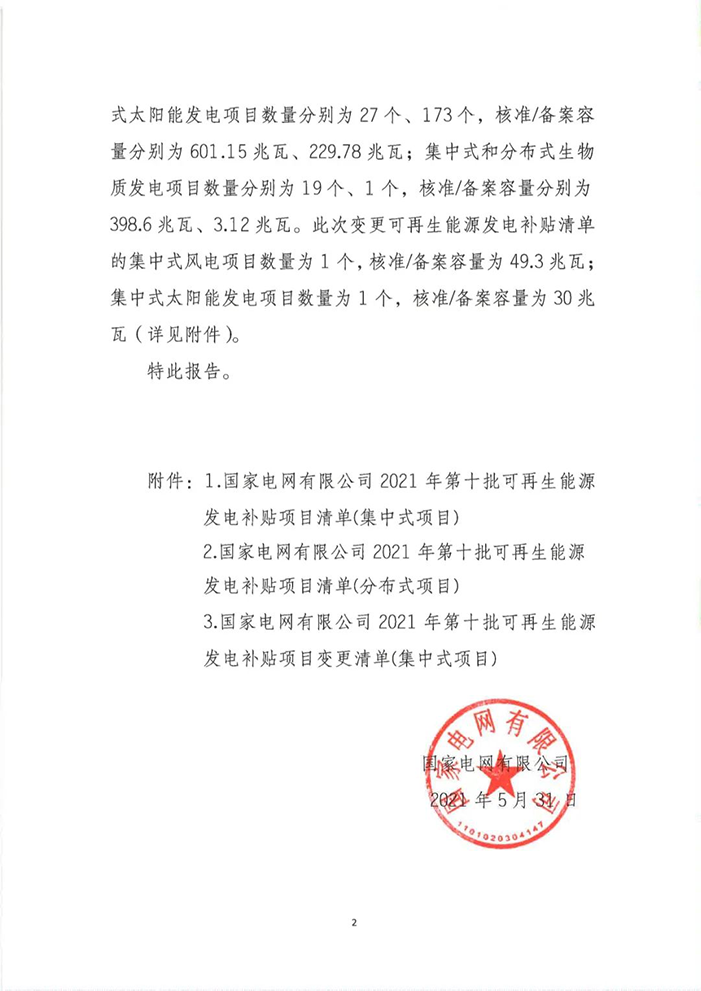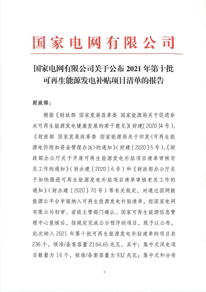 根據(jù)《財(cái)政部 國(guó)家發(fā)展改革委 國(guó)家能源局關(guān)于促進(jìn)非水可再生能源發(fā)電健康發(fā)展的若干意見》(財(cái)建〔2020〕4號(hào))、《財(cái)政部 國(guó)家發(fā)展改革委 國(guó)家能源局關(guān)于印發(fā)<可再生能源電價(jià)附加資金管理辦法>的通知》(財(cái)建〔2020〕5號(hào))、《財(cái)政部辦公廳關(guān)于開展可再生能源發(fā)電補(bǔ)貼項(xiàng)目清單審核有關(guān)工作的通知》(財(cái)辦建〔2020〕6號(hào))和《財(cái)政部辦公廳關(guān)于加快推進(jìn)可再生能源發(fā)電補(bǔ)貼項(xiàng)目清單審核有關(guān)工作的通知》(財(cái)辦建〔2020〕70號(hào))等有關(guān)規(guī)定,國(guó)家電網(wǎng)有限公司積極配合各省級(jí)能源主管部門和國(guó)家可再生能源信息管理中心,為符合中央財(cái)政補(bǔ)助條件的可再生能源發(fā)電項(xiàng)目提供補(bǔ)貼清單申報(bào)服務(wù)。