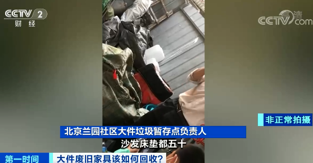 北京蘭園社區(qū)大件垃圾暫存點(diǎn)負(fù)責(zé)人:沒法上樓搬,就是拉走的錢。上海:小區(qū)設(shè)置廢舊家具臨時(shí)回收點(diǎn)