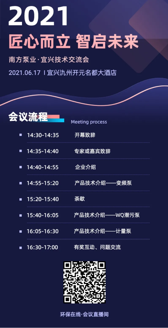 鎖定“匠心而立 智啟未來”南方泵業(yè)2021年宜興地區(qū)技術(shù)交流會(huì),鎖定宜興環(huán)保城,鎖定環(huán)保在線,6月17日,咱們不見不散!