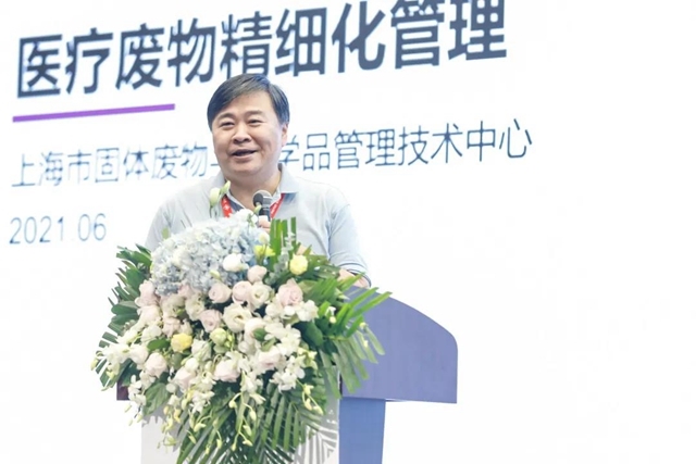 上海市固體廢物與化學(xué)品管理技術(shù)中心主任吳勁松分享了上海市醫(yī)療廢物精細(xì)化管理的經(jīng)驗,實施分級分類收運體系,建立三級應(yīng)急保障體系,疫情期間采取“白加黑”收運模式,日戰(zhàn)日清。