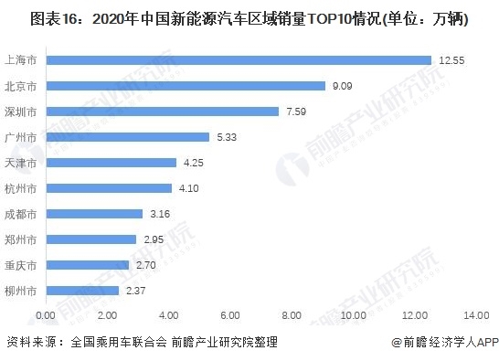 進(jìn)入前十的城市還有北京市、深圳市、廣州市、天津市、杭州市、成都市、鄭州市、重慶市、柳州市。但是可以看到,這些城市新能源汽車銷量的接地分布較為明顯,排名第十的柳州市在2020年新能源汽車的銷量為2.37萬輛,較排名第一的上海相差10.18萬輛。