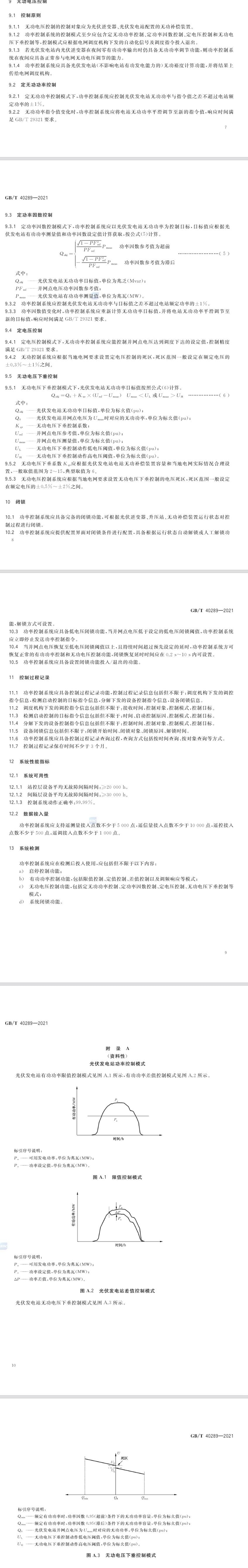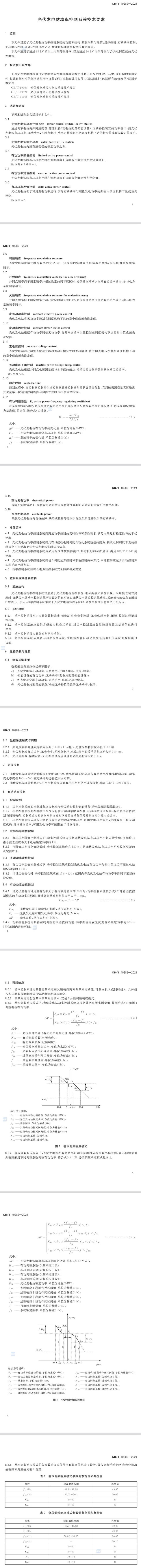 本文件規(guī)定了光伏發(fā)電站功率控制系統(tǒng)的功能和結(jié)構(gòu)、數(shù)據(jù)采集與通信、啟停控制、有功功率控制、無功電壓控制、閉鎖、控制過程記錄、性能指標和系統(tǒng)檢測等技術(shù)要求。