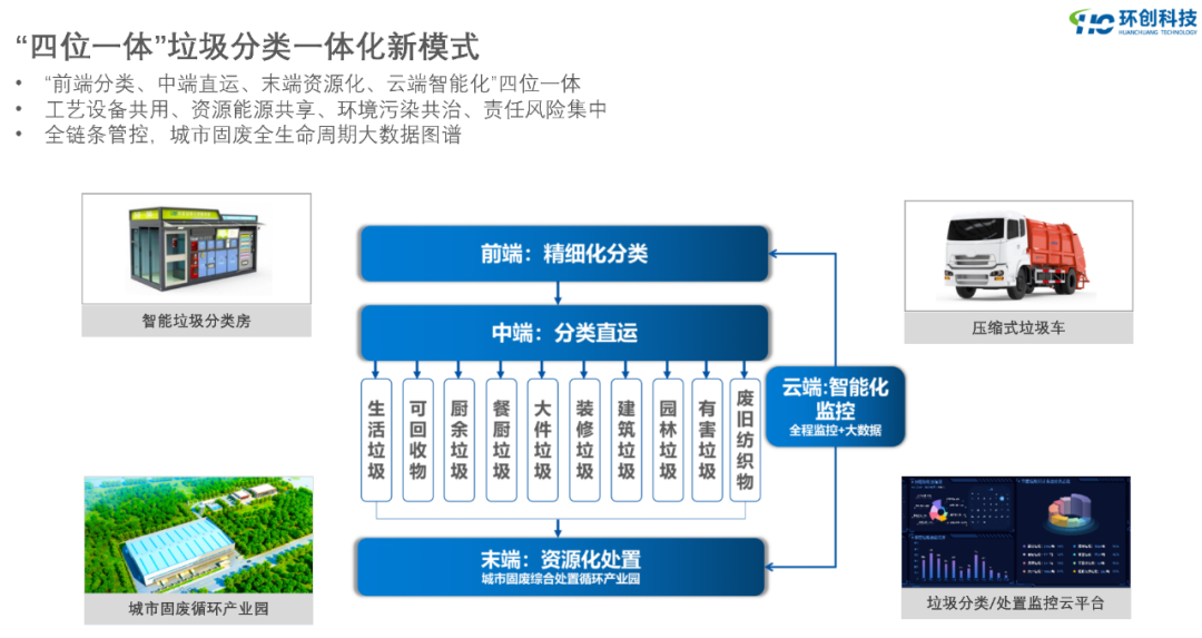 不同于傳統(tǒng)的垃圾分類或環(huán)衛(wèi)運(yùn)營項(xiàng)目,“四位一體”垃圾分類一體化新模式,包括“前端精細(xì)化分類、中端分類直運(yùn)、末端資源化處置、云端智能化監(jiān)控”“四位一體”,是覆蓋垃圾的產(chǎn)生、運(yùn)輸、資源化處置及數(shù)據(jù)云端的全鏈條一體化處置模式。
