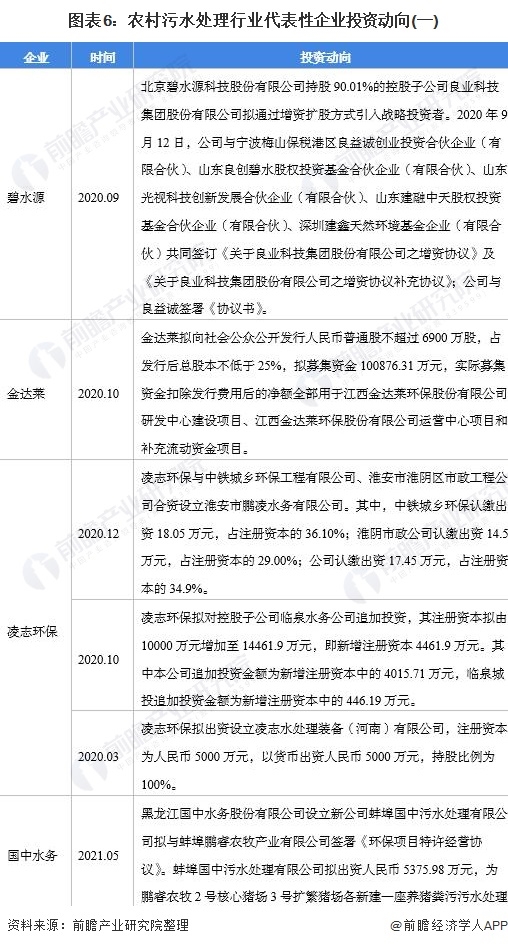 農(nóng)村污水處理行業(yè)代表性企業(yè)最新投資動(dòng)向