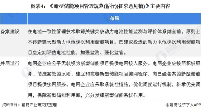 本次新型儲能的政策對儲能項(xiàng)目持有者和儲能電池制造商來說是巨大利好?!缎滦蛢δ茼?xiàng)目管理規(guī)范(暫行)(征求意見稿)》主要從規(guī)劃引導(dǎo)、備案建設(shè)、并網(wǎng)運(yùn)行、檢測監(jiān)督四個(gè)方面起草了新型儲能項(xiàng)目的管理規(guī)范。