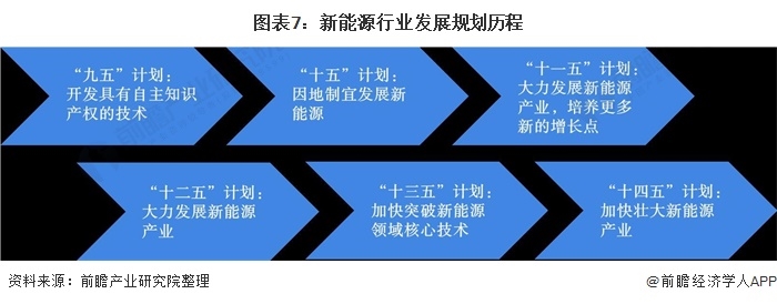由于傳統(tǒng)石化能源的不可再生性以及污染問題(新能源是指除了傳統(tǒng)石化能源以外的其他能源形勢,包括水電、核電和風(fēng)電太陽能等等,相比于使用傳統(tǒng)能源進行火力發(fā)電和發(fā)熱產(chǎn)生大量的碳排放而言,新能源的發(fā)電過程幾乎沒有任何碳排放),我國早在“九五”計劃時就開始布局新能源技術(shù),隨后歷年的國家發(fā)展規(guī)劃。