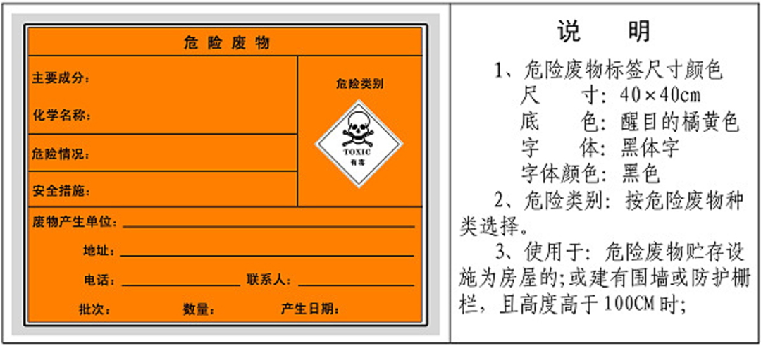 懸掛于危廢貯存間外面門的一側,或獨立擺放于危廢貯存間外