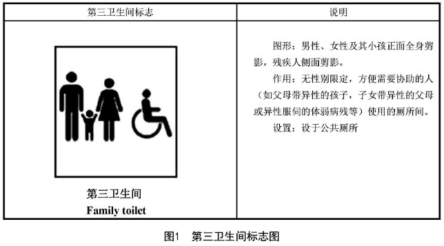 按照標準北京市公共廁所建設規(guī)范 DB11/T190-2016,第三衛(wèi)生間標志如上圖。