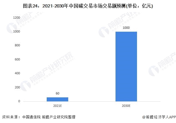 由于我國的工業(yè)大體量和高數(shù)量碳排放,由此可見我國未來碳交易市場容量將是巨大的,有很大的發(fā)展空間。預(yù)計2021年我國碳交易市場成交量或?qū)⑦_到2.5億噸,為2020年各個試點交易所交易總量的3倍,成交金額將達60億元。隨著全國統(tǒng)一的碳排放交易市場的建立,未來我國碳市場覆蓋范圍將逐步擴大,到碳達峰的2030年累計交易額或?qū)⒊^1000億元。