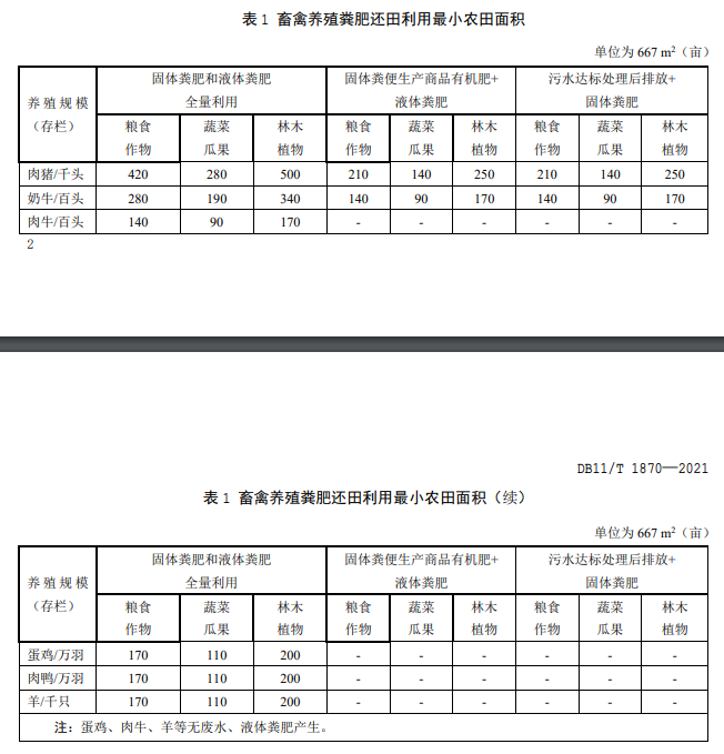 7.2 不同畜種及一定規(guī)模養(yǎng)殖場(chǎng)戶(hù)所需的糞肥還田利用最小農(nóng)田面積按照表 1 的規(guī)定執(zhí)行。