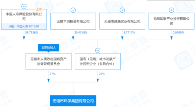 無錫市環(huán)保集團有限公司實際控制人為無錫市人民政府國有資產(chǎn)監(jiān)督管理委員會,擁有無錫環(huán)保集團77%的股權,另一大股東為國壽(無錫)城市發(fā)展產(chǎn)業(yè)投資企業(yè)(有限合伙),該公司最大股東為中國人壽保險股份有限公司,持股59.7826%。