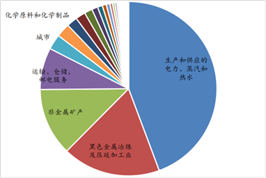 圖2 中國(guó)主要碳排放行業(yè)(2017年)