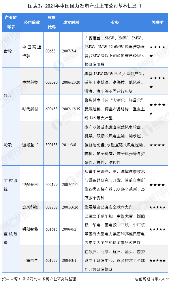 1、 風(fēng)力發(fā)電產(chǎn)業(yè)上市公司匯總