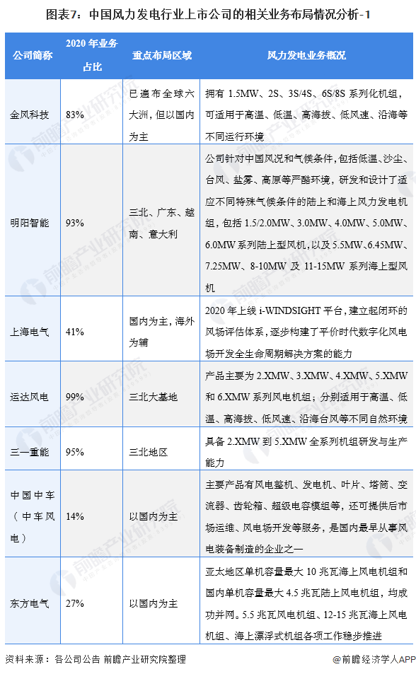2、 風(fēng)力發(fā)電行業(yè)上市公司業(yè)務(wù)布局對(duì)比
