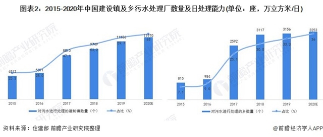 事實(shí)上,雖然國家近年來積極推動農(nóng)村污水處理,但是“十三五”時期我國農(nóng)村污水處理并未達(dá)到規(guī)劃目標(biāo)。前瞻初步估計,截止2020年底,我國建設(shè)鎮(zhèn)及鄉(xiāng)污水處理廠數(shù)量分別為11970座和1952座;我國建設(shè)鎮(zhèn)及鄉(xiāng)污水日處理能力分別達(dá)到了2753萬立方米/日和115萬立方米/日。