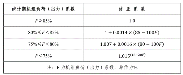 表2  常規(guī)燃煤純凝發(fā)電機組負荷(出力)系數(shù)修正系數(shù)