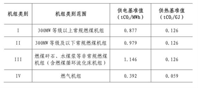 表1  2019-2020年各類別機組碳排放基準值