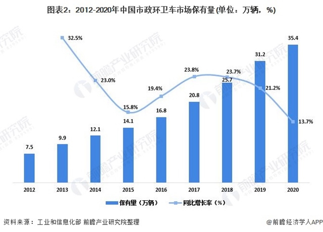 截至2020年底,我國市政環(huán)衛(wèi)車市場保有量累計(jì)達(dá)到35.4萬輛,同比增長13.7%。