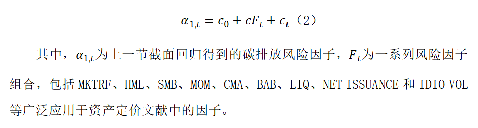 碳溢價的一個可能解釋是機構(gòu)投資者實施可持續(xù)政策而對高碳排放股票進行撤資和排除性篩選,導致投資組合的多元化不足?;貧w模型為: